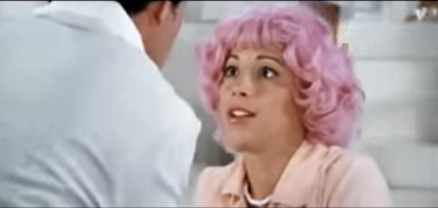 While I was in stillness, I suddenly started seeing a scene from Grease — the part where Frenchie is in her pink wig, the song is “Beauty School Dropout.” You know the one, all white background, angels in white dresses flapping around.